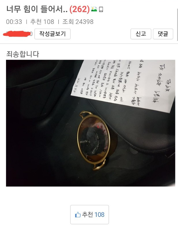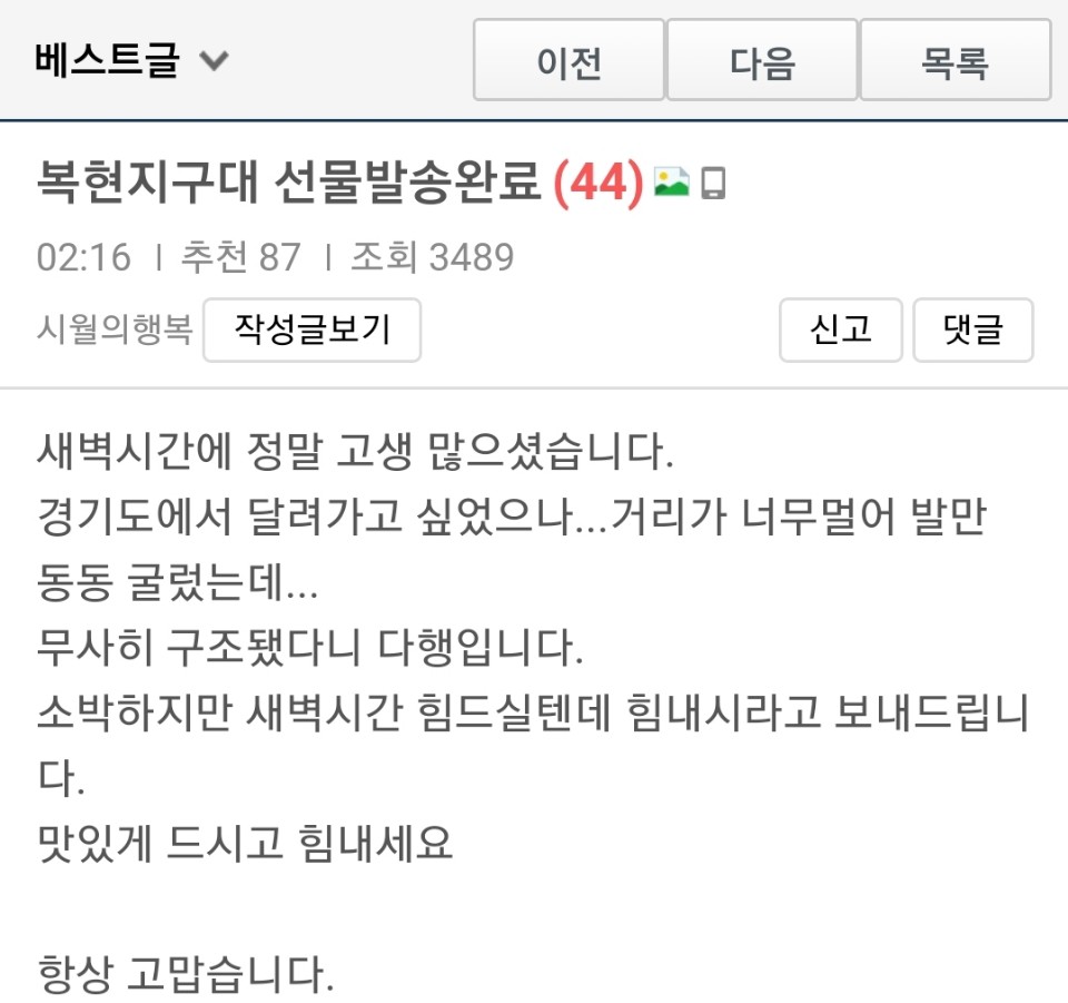 그리고 새벽에 고생한 지구대 경찰을 향한 보배형님의 정성까지.....