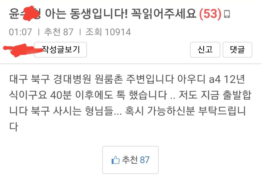 그리고 지인 이라는 동생도 걱정하며 글을쓰고 찾아나섬.....